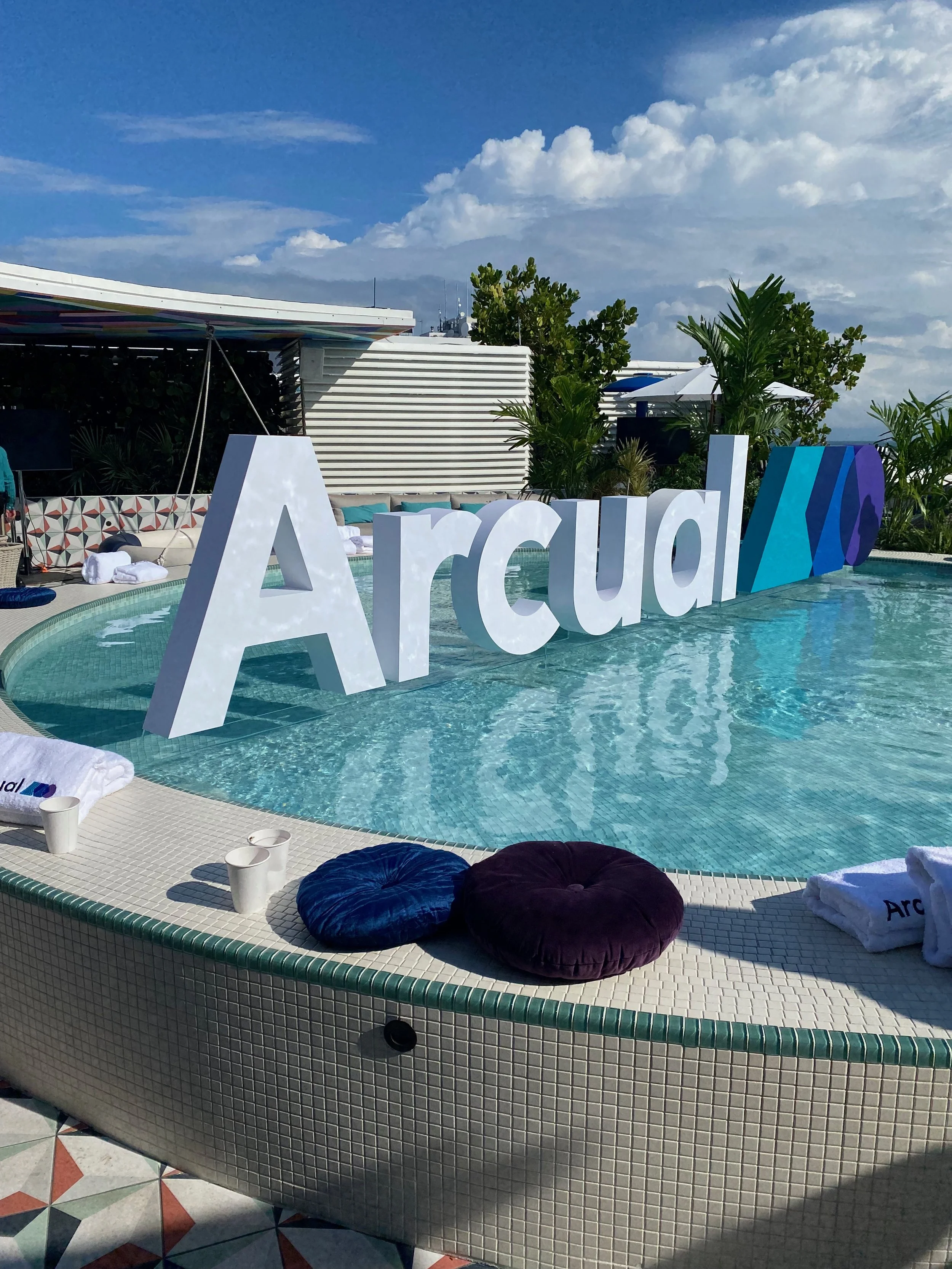 Read MoreThe merch-laden pool at the rooftop launch event for Arcual, the new blockchain-based transaction platform from MCH Group, the Luma Foundation, and BCG Digital Ventures, at Art Basel Miami Beach 2022. Photo by the Gray Market.